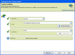 - Testdurchführung: Verwendetes Design (wenn zukünftig verschiedene Designs zur Verfügung stehen, auch kundenspezifische Designs sind möglich); Spracheinstellungen bearbeiten (Text auf der ersten Seite bei Teststart pro Sprache)